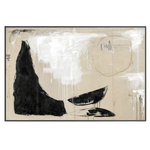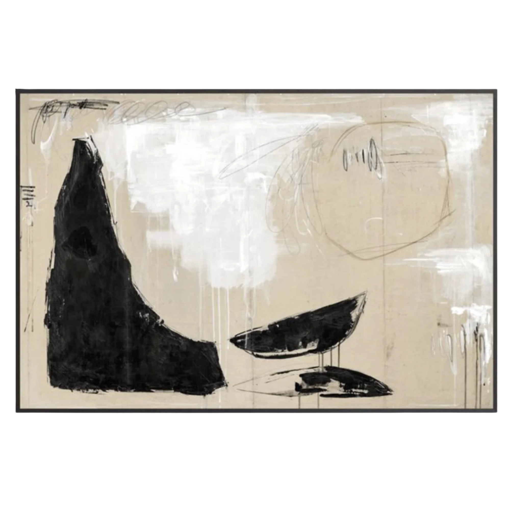A trebuchet is the French catapult. Here, artist Gayle Harismowich has playfully abstracted this early technology in a mid-century leaning, painterly abstract in mixed media. Bombs away!