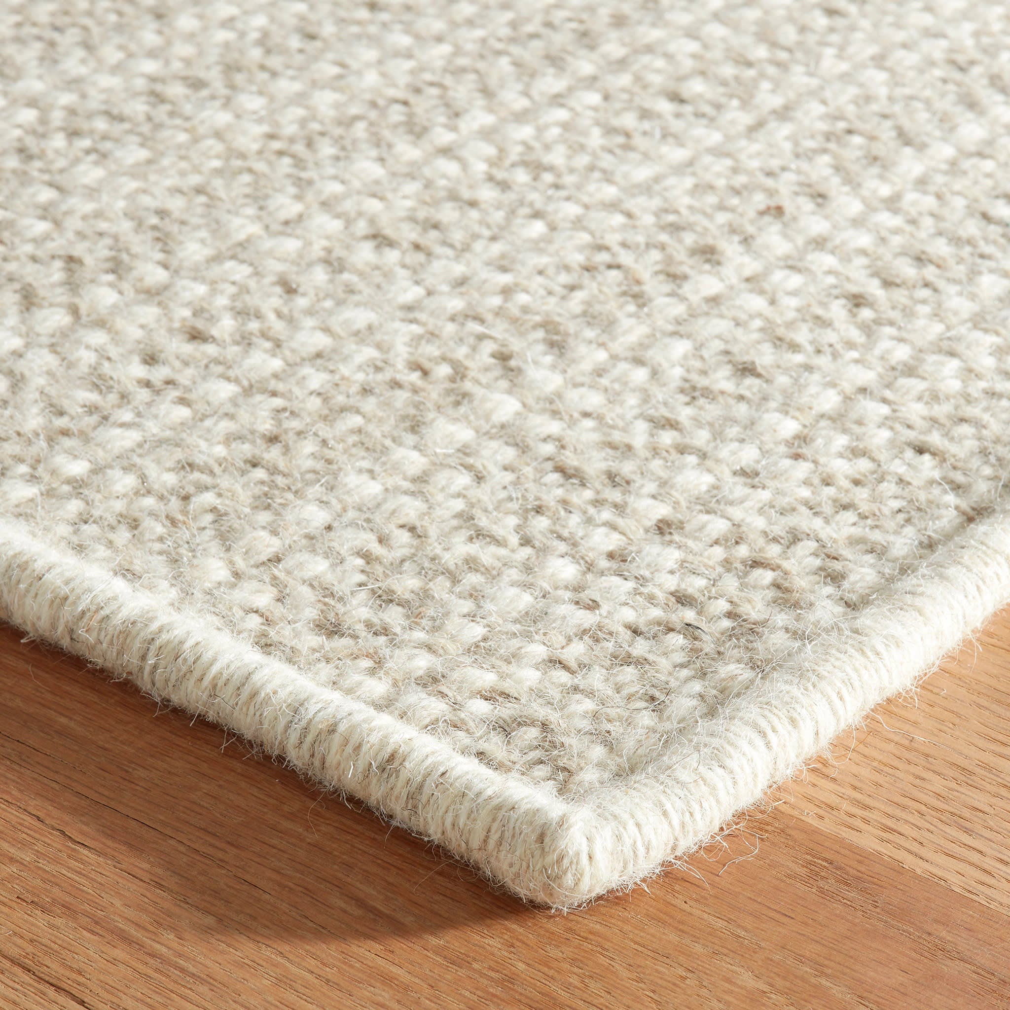 This handsome woven wool custom rug consists of soft, chunky wool that is pleasing underfoot and easy on the eyes. Its low-profile, flatweave construction makes it suitable for stairways and hallway runners, while the 100% wool fibers ensure durability even in high-traffic spaces. Subtle chevron stripes and natural color variations add visual interest and texture.