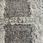 The Cassian Sage rug is a hand-woven wool and cotton area rug with an asymmetrical gridded pattern and high-low texture. The rug’s higher, shaggy pile takes cues from Moroccan designs, while the neutral colors and natural materials make it a cozy addition to any space, especially living rooms and dens. This collection is GoodWeave certified, ensuring our commitment to ethical production and the support of weavers’ communities.