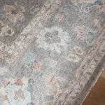 Hand-knotted in India of 100% wool by skilled artisans, the Vivienne Pebble / Pebble Area Rug offers the look of a well-worn antique area rug in a modern-day color palette. Each exquisite piece undergoes a weeks-long antique washing process which fades the pattern and color beautifully. Vincent fits right at home in any elegant room setting.