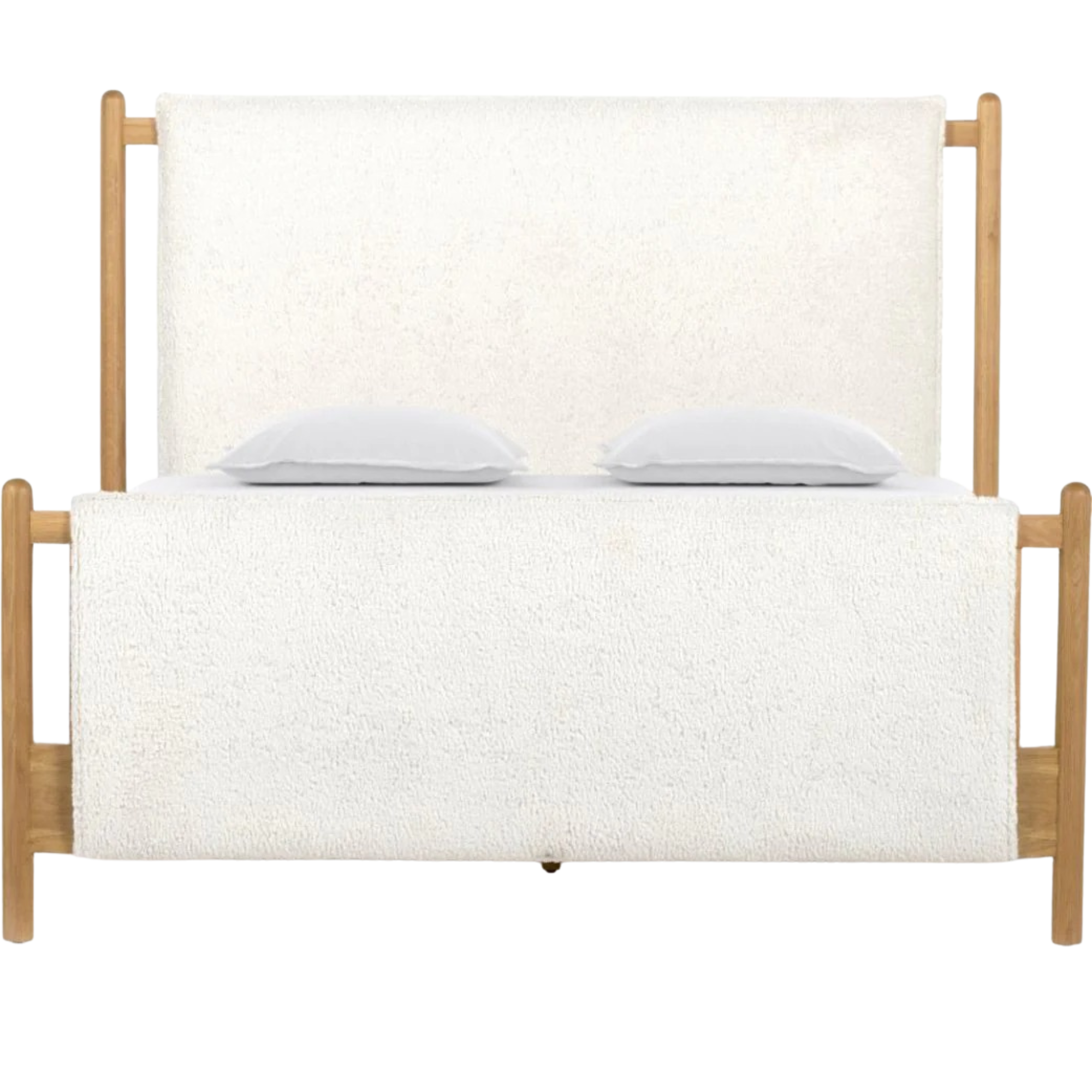 Bring a cozy hygge vibe to the bedroom with this textured Bowen Bed. Framed by light-finished solid oak, a sling-style bed features faux shearling head and foot boards -- sure to elevate any bedroom.