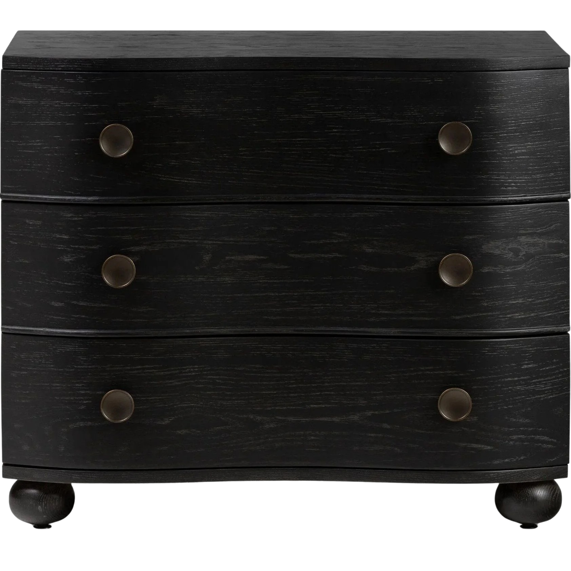 Introduce a touch of elegance to your bedroom with our Tiago Distressed Black Nightstand. Crafted with exquisite attention to detail, this nightstand features a sleek design and distressed black finish, adding a touch of sophistication to any room. Ready to ship, it's the perfect addition to your luxurious space.