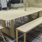 With enriched shapes and unexpected details, this Oak Geometric Dining Table is a statement item. Luxury comes with its length, which is offset by softened edges and natural lines -- perfect for any dining room or workspace.