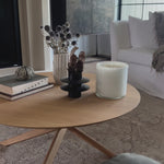 The Oak Mikado Coffee Table, designed by Alain van Havre, is a study of balance and symmetry. The interested base brings a unique look to any living room or lounge area!