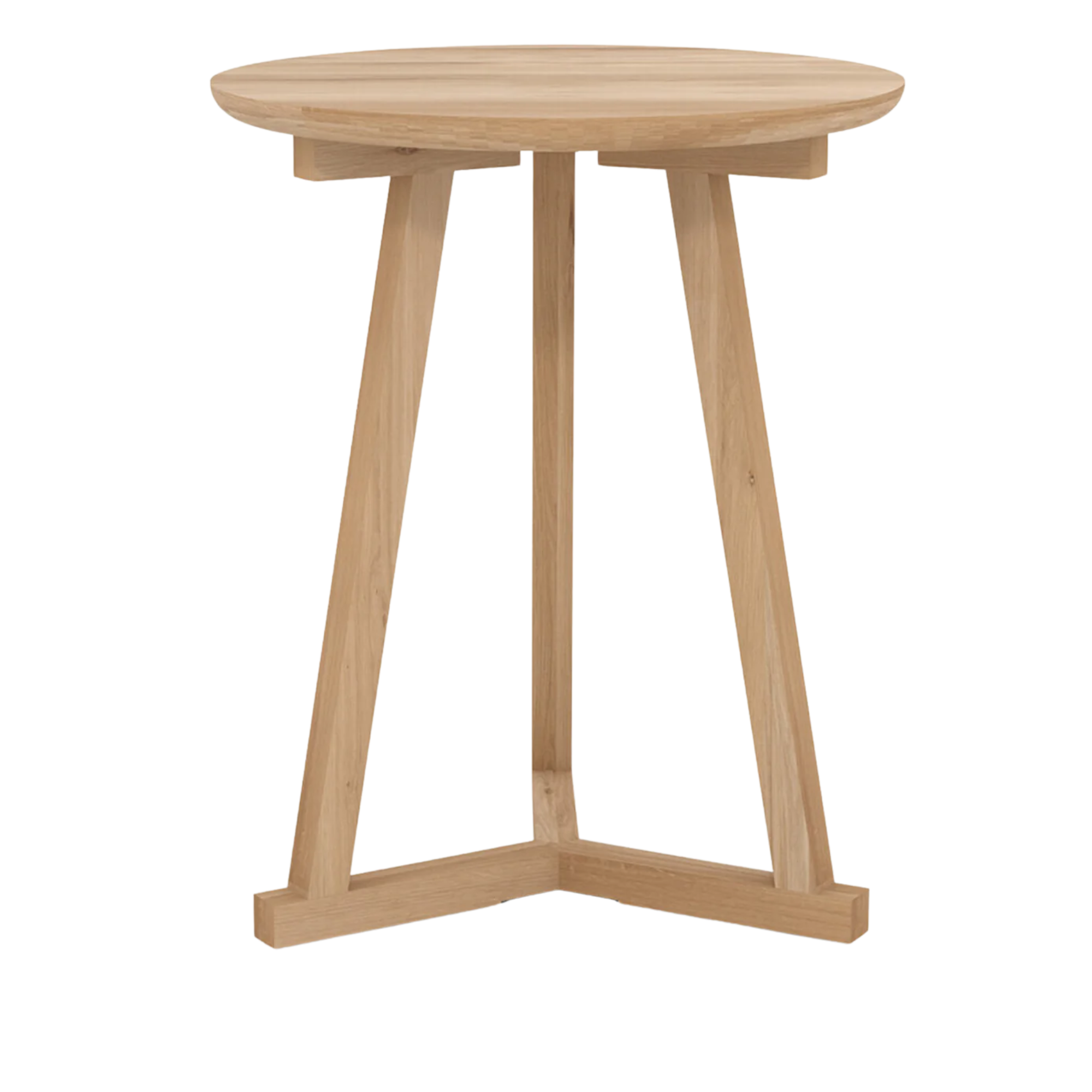 Featuring Oak Tripod Side Table by Ethnicraft at Amethyst Home. The Oak Tripod Side Table is a light, versatile piece that can be used on its own or in a group of several tables. It can easily be moved from room to room, placed next to a chair or a settee, or as a bedside table.