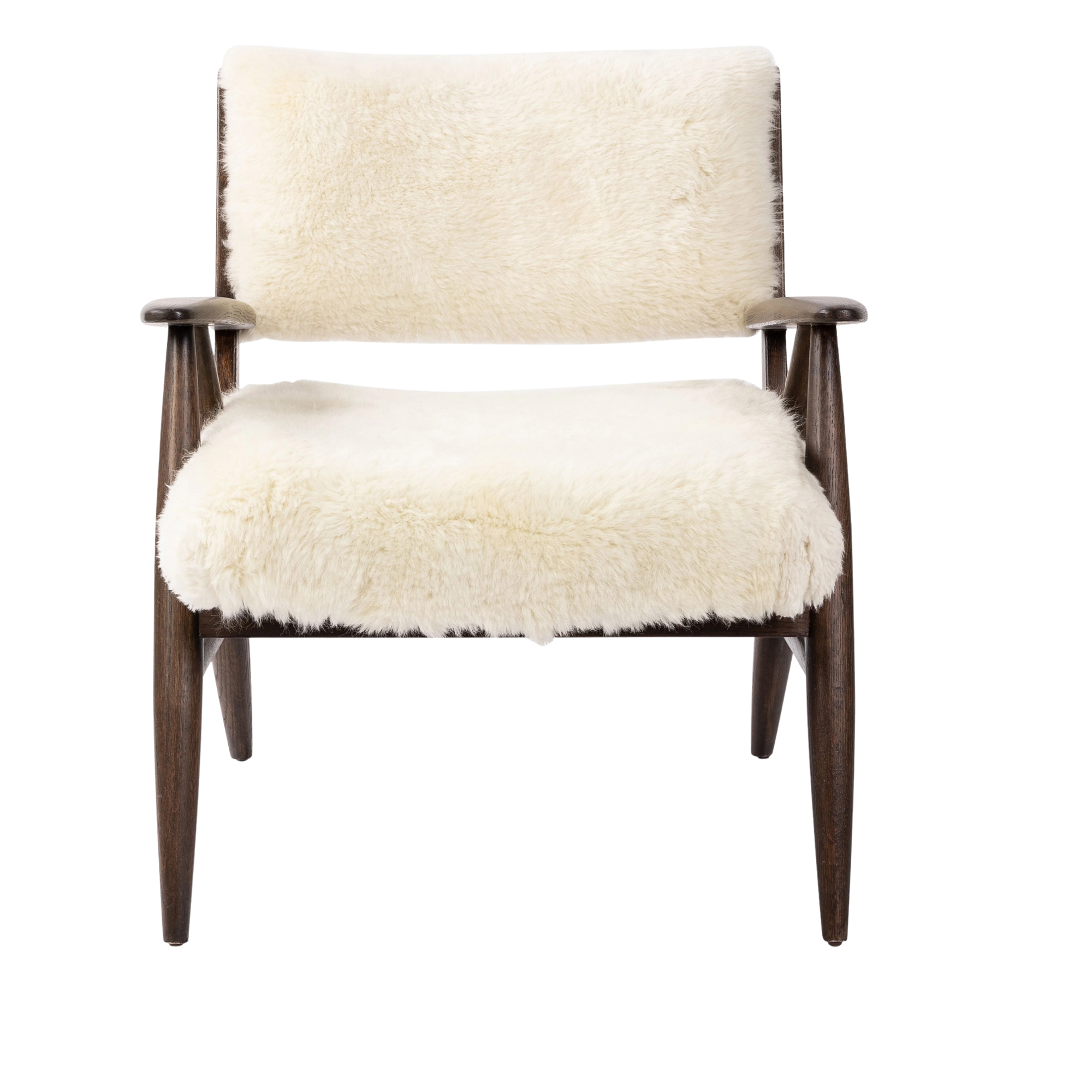 A modern take on the vintage school chair, upholstered in plush cream shearling of 100% sheepskin. Perfect as an accent chair or in pairs.