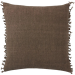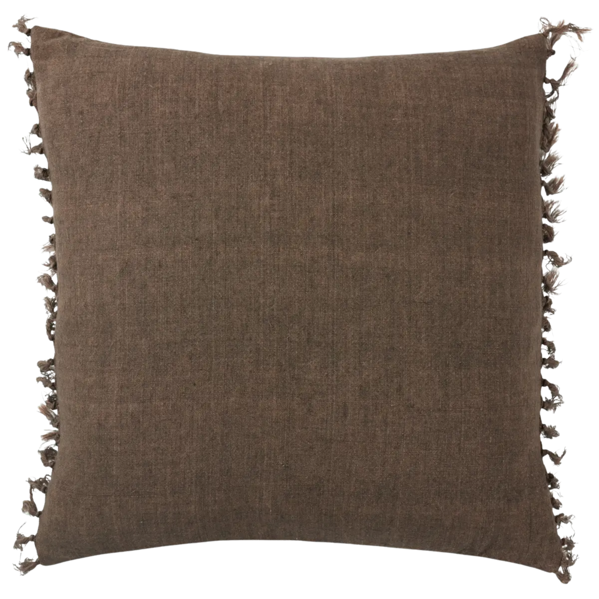 Featuring Jemina Pinecone Pillow by Jaipur Living at Amethyst Home. The Jemina Pinecone Pillow boasts an assortment of relaxed linen designs with rustic-style knotted tassels lining the sides. The comfortable Majere throw pillow delights with a cozy brown hue and subtle bohemian vibe that perfectly accents sofas, chairs, and beds alike. This casual yet sophist.  Amethyst Home provides interior design, new home construction design consulting, vintage area rugs, and lighting in the Miami metro area.