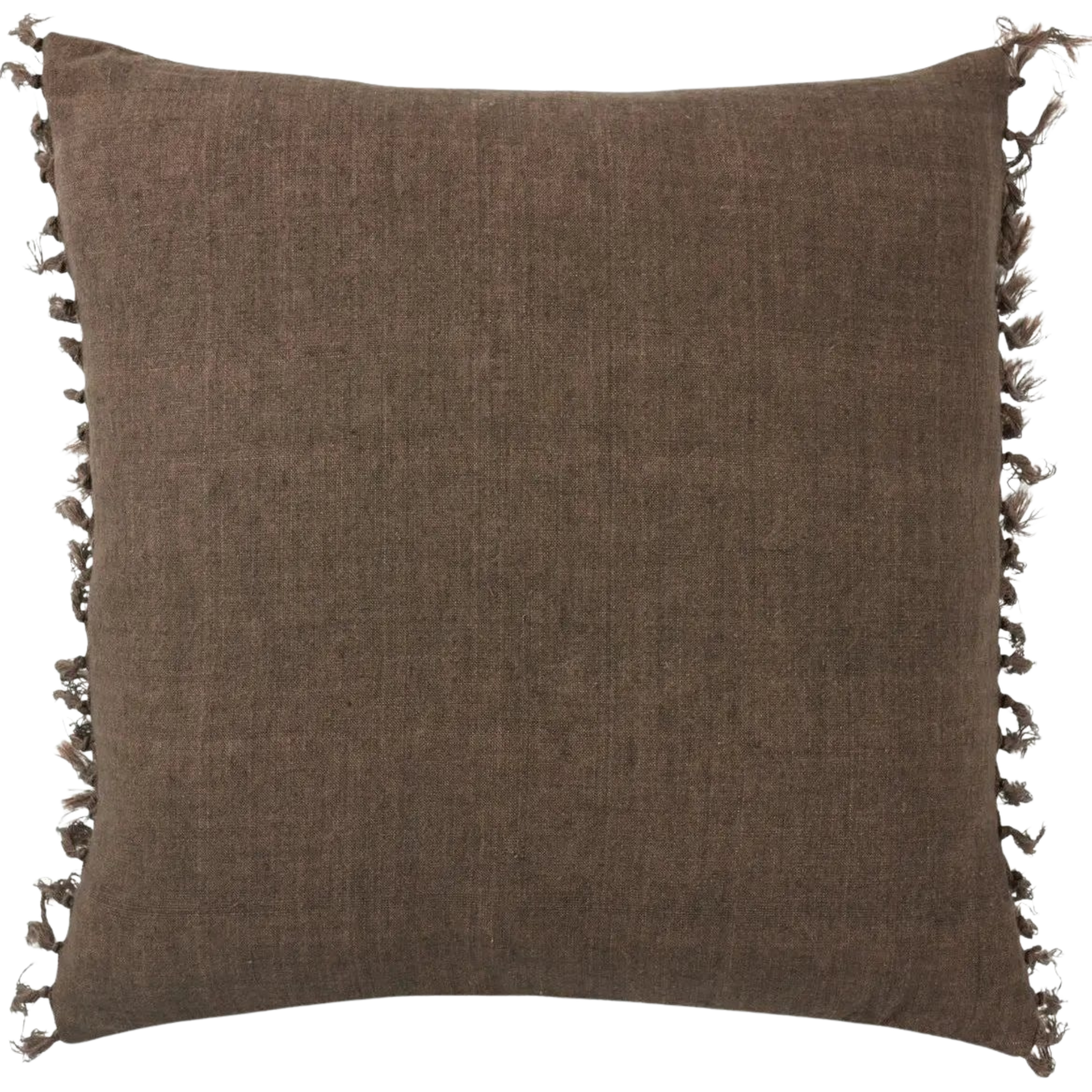 The Jemina Pinecone Pillow boasts an assortment of relaxed linen designs with rustic-style knotted tassels lining the sides. The comfortable Majere throw pillow delights with a cozy brown hue and subtle bohemian vibe that perfectly accents sofas, chairs, and beds alike. This casual yet sophisticated pillow thrives in indoor spaces of the home such as sitting rooms, living areas, and bedrooms.