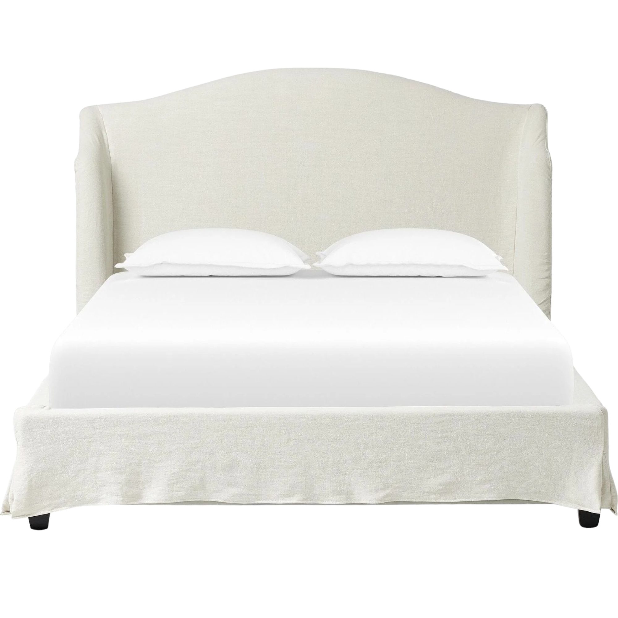 Featuring Meryl Broadway Mist Slipcover Bed by Four Hands at Amethyst Home. Inspired by the curved silhouette of the camel-back sofa, this classic shape is updated with the casual look of a slipcover. Slipcovered styles are fully removable and machine-washable for easy care.KingOverall Dimensions: 86.50"w x 89.00"d x 52.50"hWeight: 217.59 lbsQueenOverall Dimensions: 70.00"w x 89.0. Amethyst Home provides interior design, new construction, custom furniture, and area rugs in the Calabasas metro area