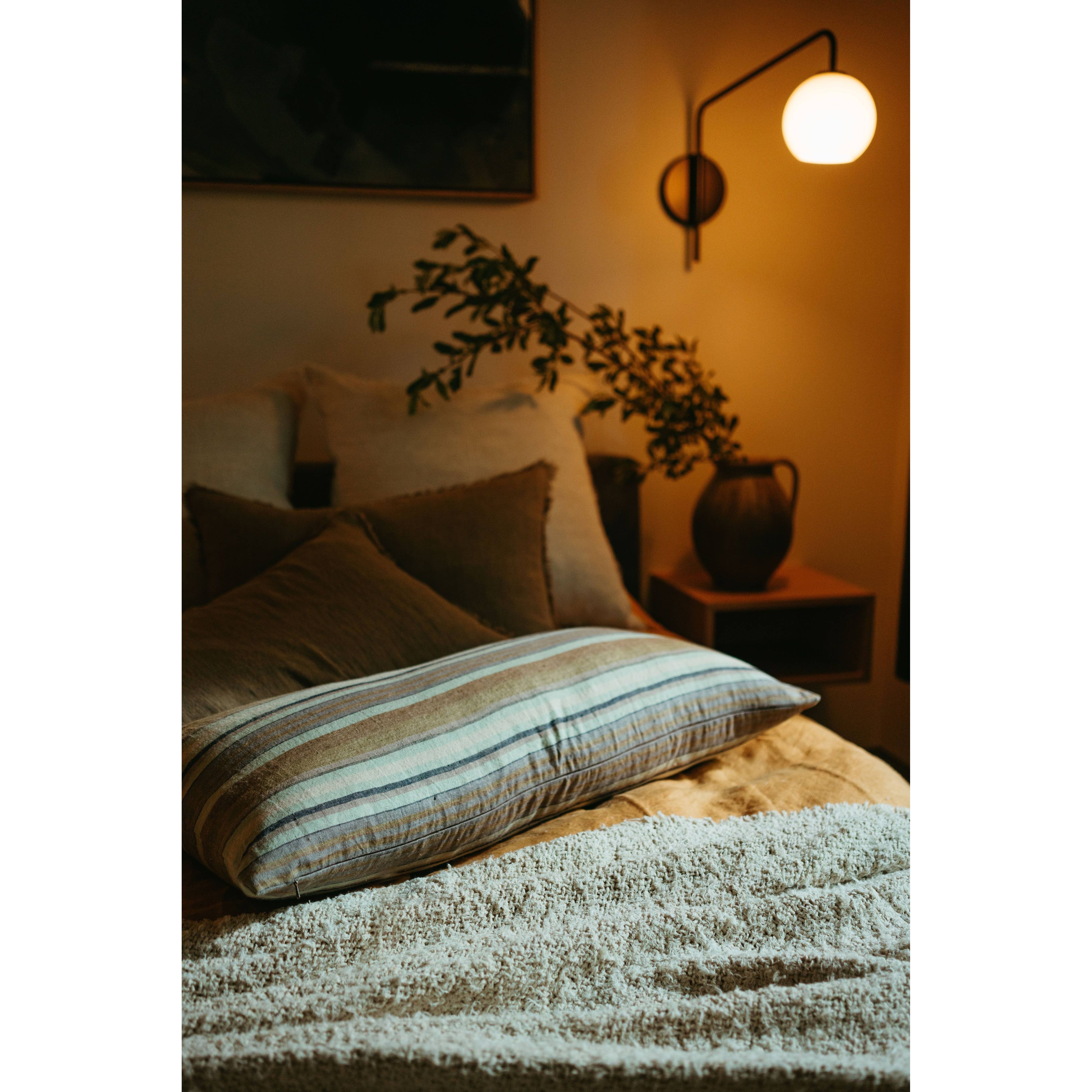 Our Seychelles Striped Linen pillows are double sided and woven with timeless earthy stripes. These versatile pillows are so easy to style, their muted multi-colour stripes giving endless possibilities on beds, sofas and accent chairs alike.