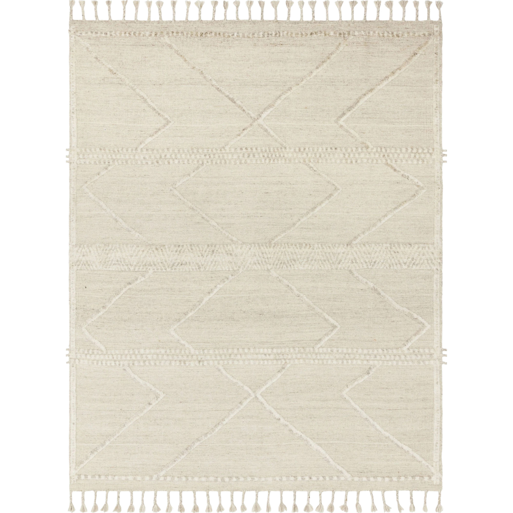 A subtle take on a popular global design -- the Adele rug is hand-knotted of 100% wool pile by skilled artisans. The surface features linear and braided details, creating tonal variations that make each piece unique. Plus, each design is finished with a playful fringe.