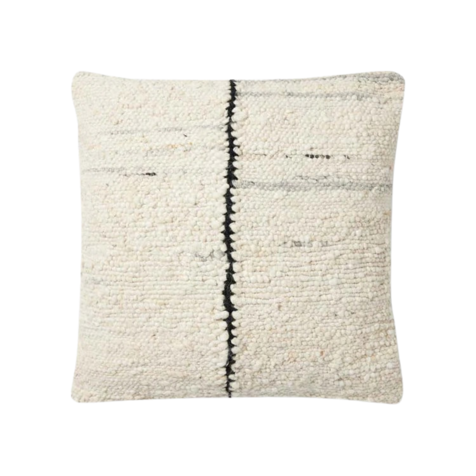 Featuring Amber Carla Ivory / Black  Pillow by Loloi at Amethyst Home. Experience the warmth and softness of the Amber Carla Ivory / Black Pillow. Hand woven with wool, polyester, and cotton, this pillow has a hidden flap closure and an antique bronze finish zipper with the Loloi logo. Finished with a knife edge and beige backing, this pillow will bring . Amethyst Home provides interior design, new home construction design consulting, vintage area rugs, and lighting in the Laguna Beach metro area.