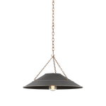 With its exposed metalwork, chain detailing, and unique finish combination, Arcane has an elevated, industrial vibe. The graphite shade feels chic and gives off a warm glow. The Patina Brass hardware, chain, and canopy add a hint of shine that plays wonderfully off the graphite. The twisted black fabric cord is a subtle detail that gives the pendant a vintage feel. Part of our Lauren Liess collection.