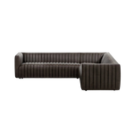 Featuring Augustine Deacon Wolf 3-Piece Sectional by Four Hands at Amethyst Home. A dramatically channeled sofa wrapped in dark top grain leather creates a mature, clean look inspired by modern menswear. This three-piece sectional is perfectly sized for smaller spaces.105"Overall Dimensions: 105.50"w x 105.50"d x 26.50"hWeight: 249.13 lbs126"Overall Dimensions: 125.50"w x 125.50"d. Amethyst Home provides interior design, new construction, custom furniture, and area rugs in the Nashville metro area