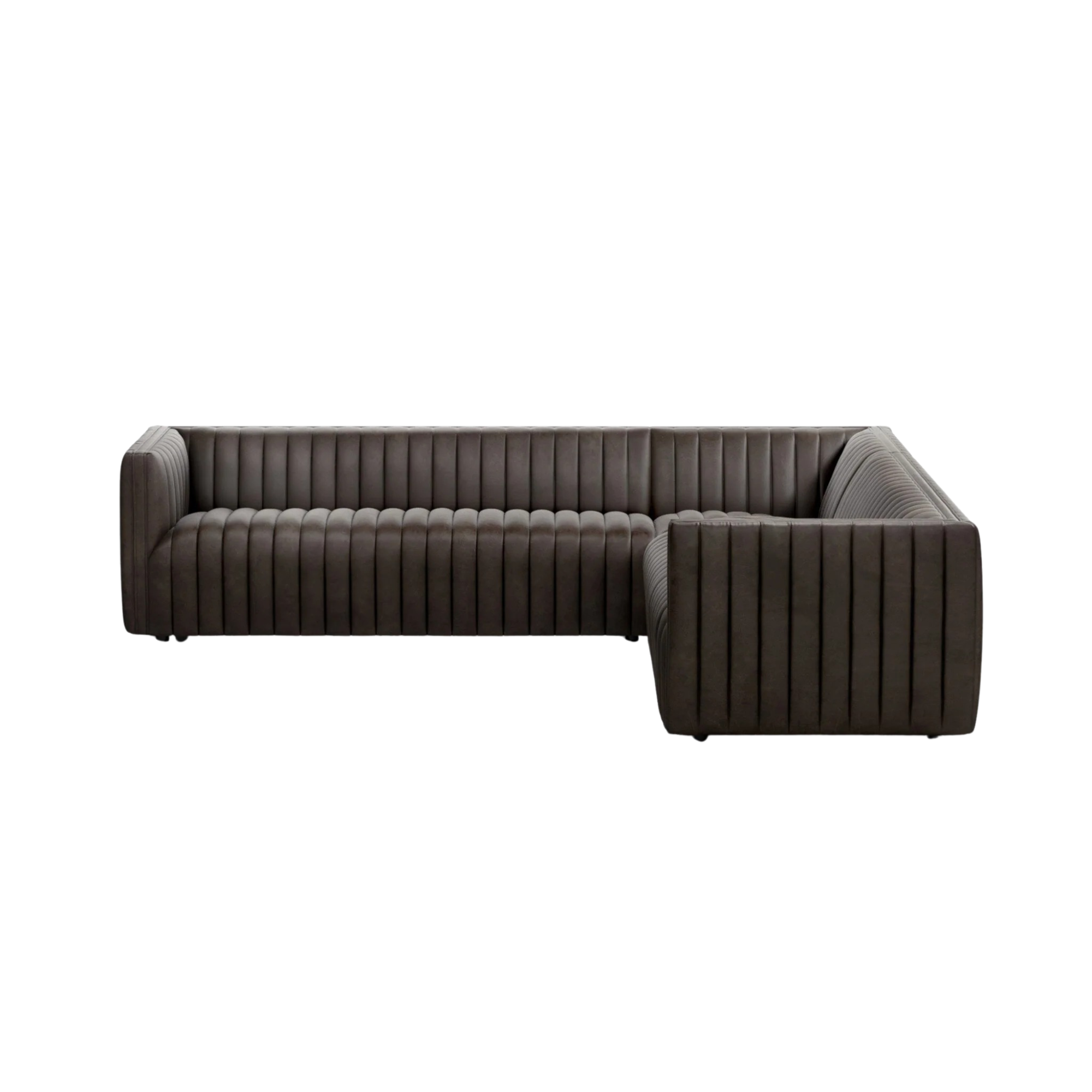 Featuring Augustine Deacon Wolf 3-Piece Sectional by Four Hands at Amethyst Home. A dramatically channeled sofa wrapped in dark top grain leather creates a mature, clean look inspired by modern menswear. This three-piece sectional is perfectly sized for smaller spaces.105"Overall Dimensions: 105.50"w x 105.50"d x 26.50"hWeight: 249.13 lbs126"Overall Dimensions: 125.50"w x 125.50. Amethyst Home provides interior design, new construction, custom furniture, and area rugs in the Los Angeles metro area
