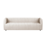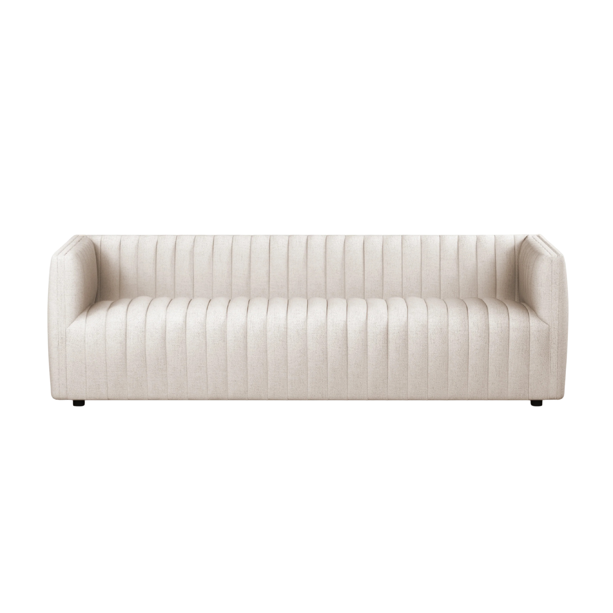 A dramatically channeled sofa with dover crescent linen-blend upholstery offers a crisp, clean look and sumptuous sit. Performance fabrics are specially created to withstand spills, stains, high traffic and wear, ensuring long-term comfort and unmatched durability.