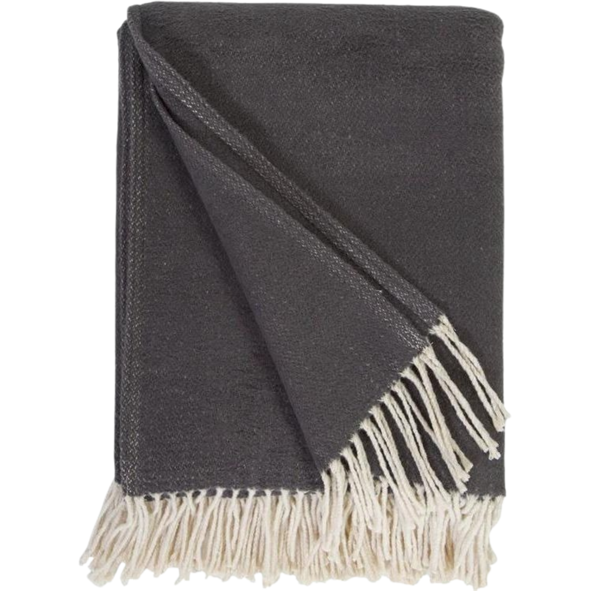 Cozy combed cotton Billie Charcoal Throw with a soft ivory interwoven weave ending in tassels.