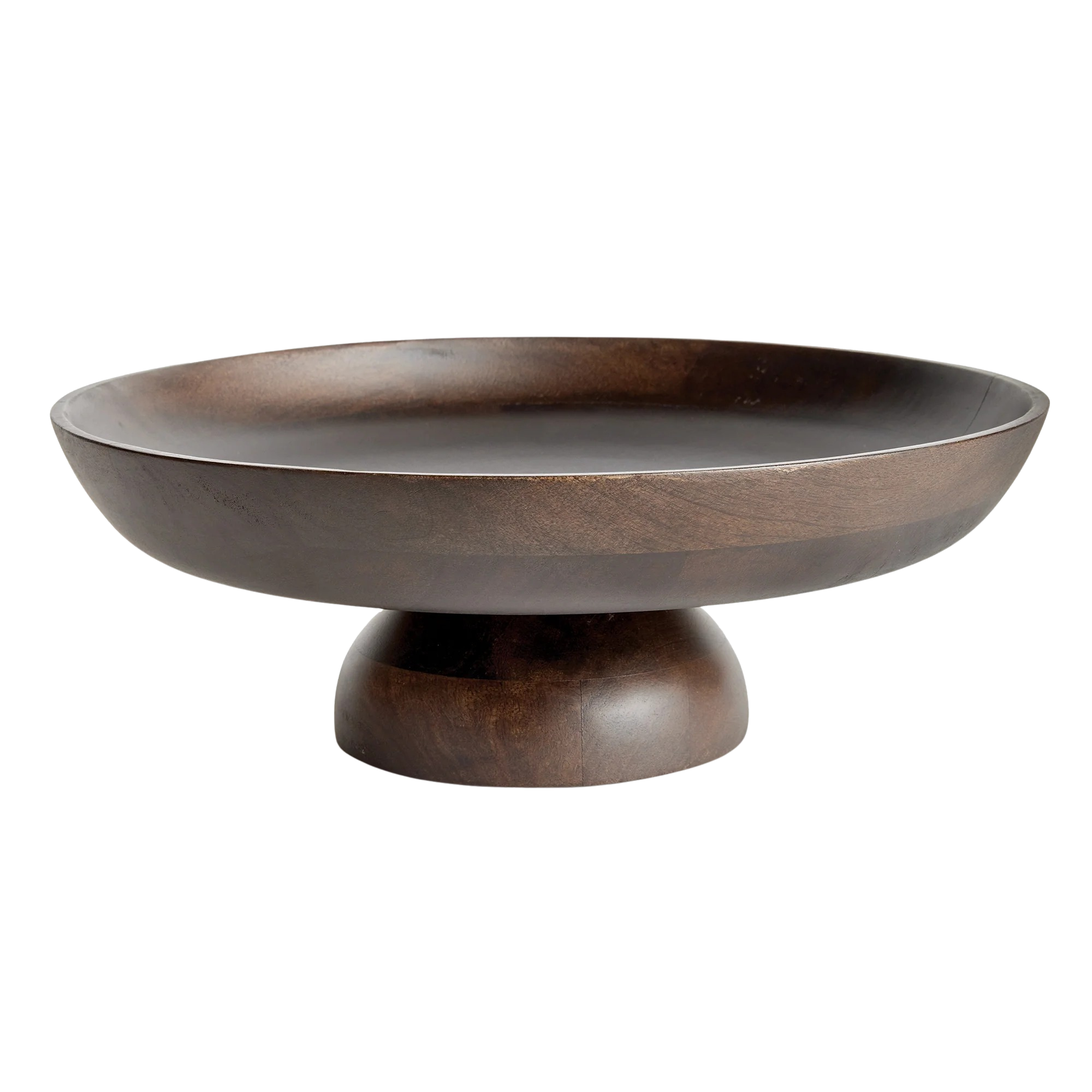 Contemporary and uniquely designed, this footed bowl is made of mango wood. Makes a beautiful serving bowl for dry foods, as well as a gorgeous centerpiece all on its own.