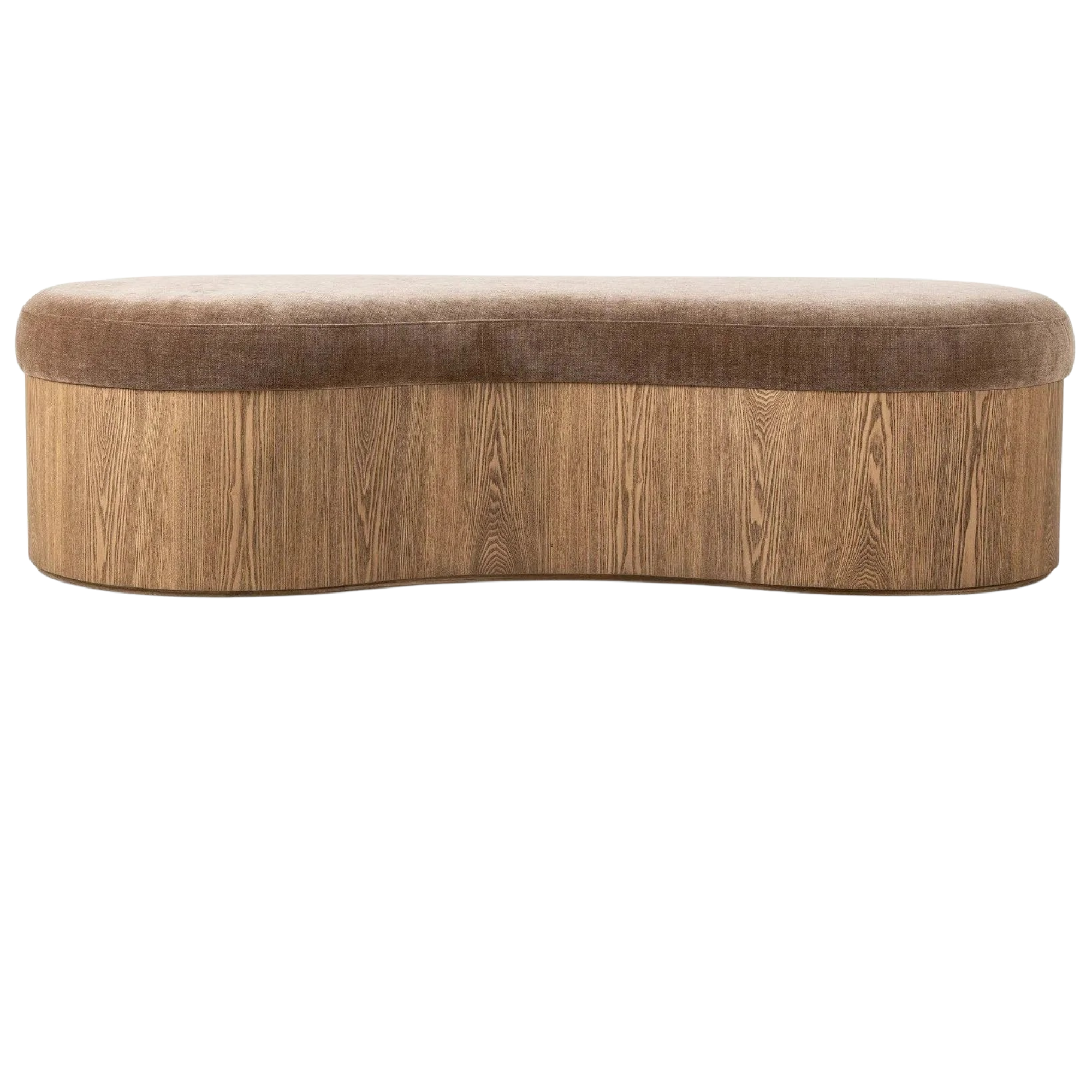 Elevate any room with a curvy statement bench. Made from a kidney-shaped base of toasted ash veneer and a soft, velvety seat.
