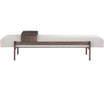 A uniquely modern statement piece inspired by the functional mid-century-style telephone bench, textural white-grey seating features a sliding tray of solid beechwood – the perfect place for a favorite book or cocktail. Great in the entryway or living room.