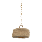 In its construction, silhouette, and materiality, Ferrando makes a soft, organic statement. This pendant features a textural woven seagrass shade with a returned bottom edge that creates a diffused wash of light. Also wrapped in seagrass, the oversized top loop detail adds a graphic note to the floaty design. The neutral tones are accented by a touch of shine from Aged Brass hardware. Available in two sizes, this pendant’s nest-like beauty brings fresh energy to any space.