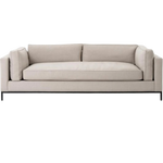 Streamlined yet comfortable!  We loved the subtle piping of the cushion details and beautiful neutral color!  Flexible style, luxurious comfort and family-friendly upholstery. Clean, simple lines and black iron base keep everything casual and chic.