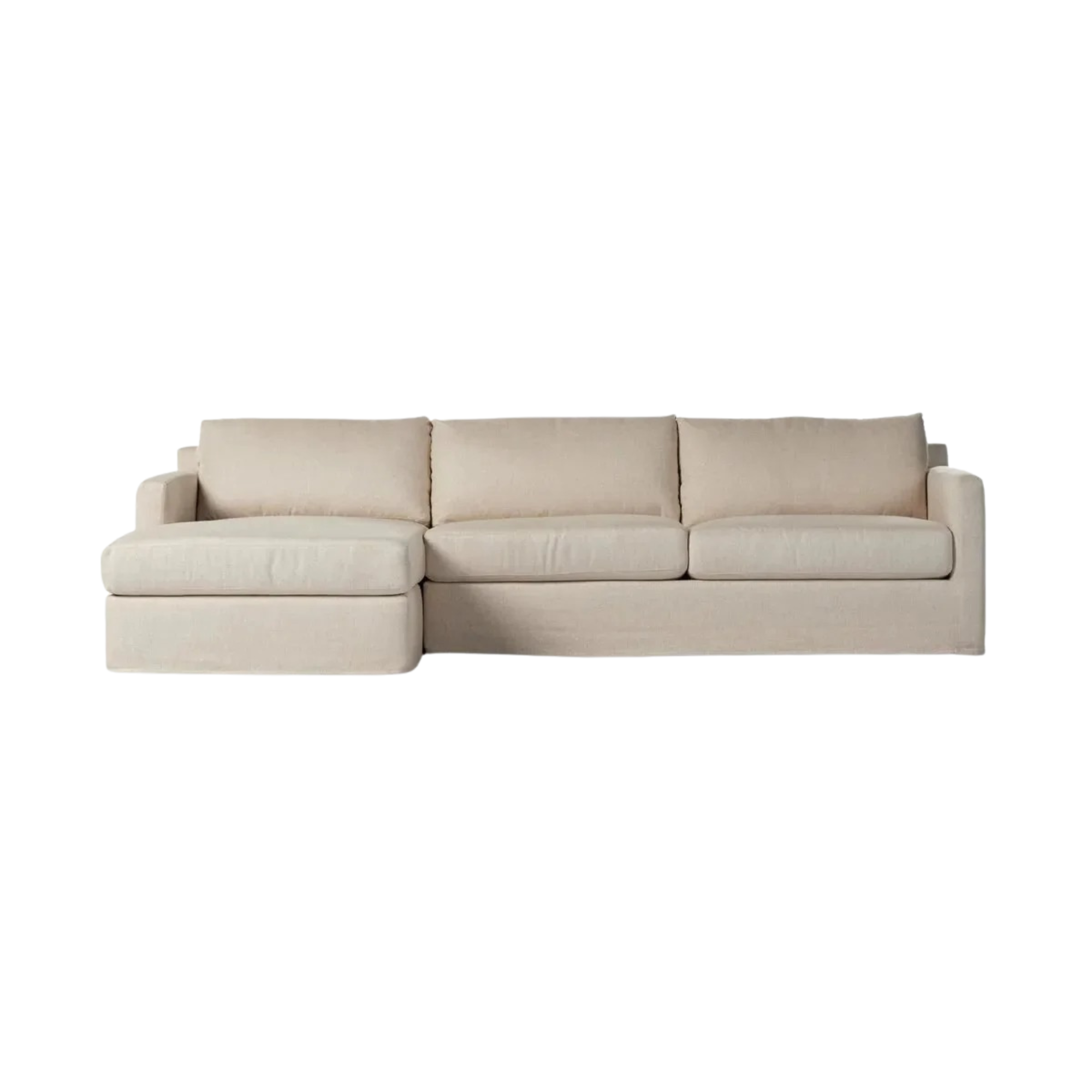 Hampton Evere Creme 2-Piece Left Chaise Slipcover Sectional  Four Hands