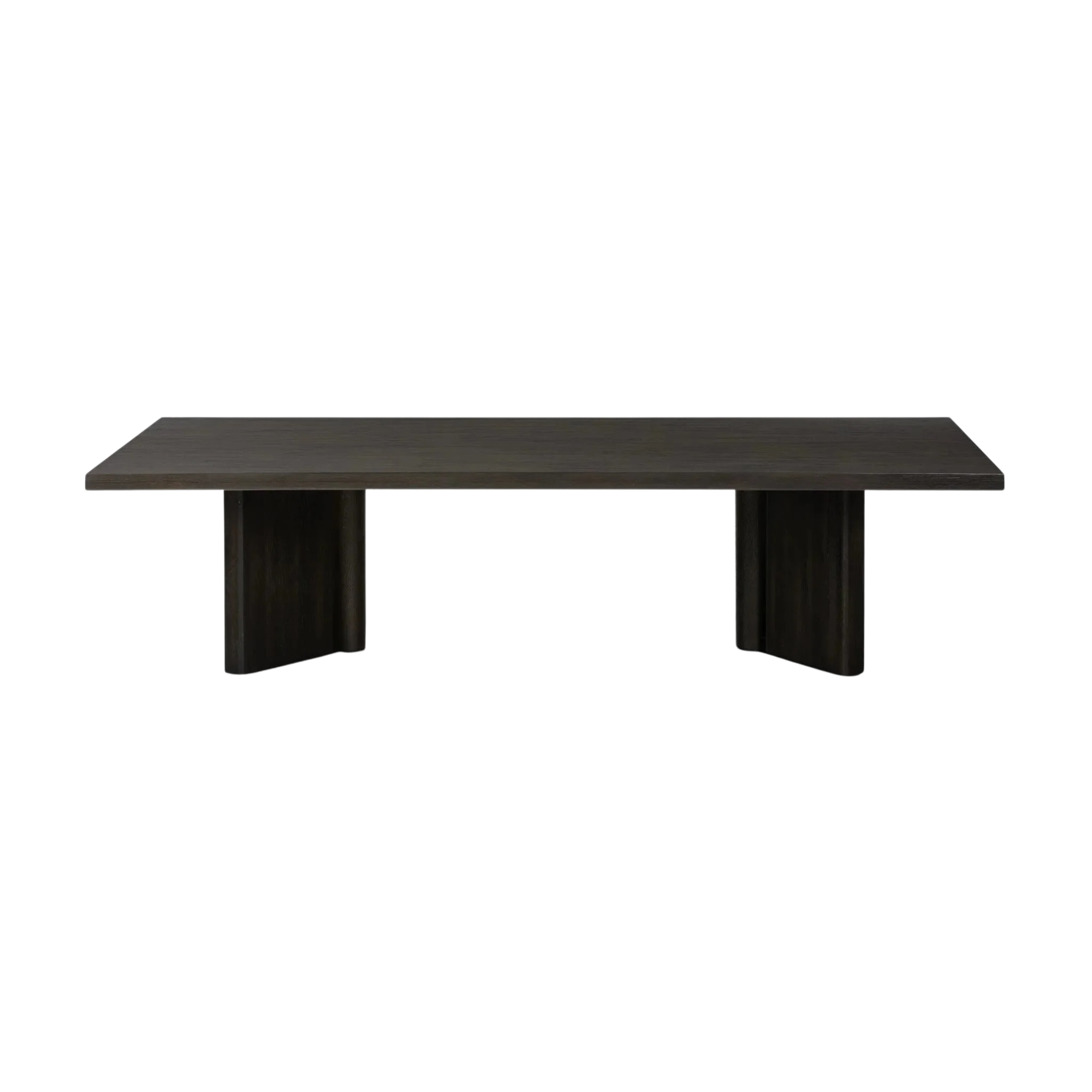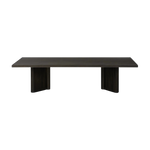 A smoked black finish delivers a character-rich look to a rectangular coffee table. Angled panel legs up the intrigue factor.