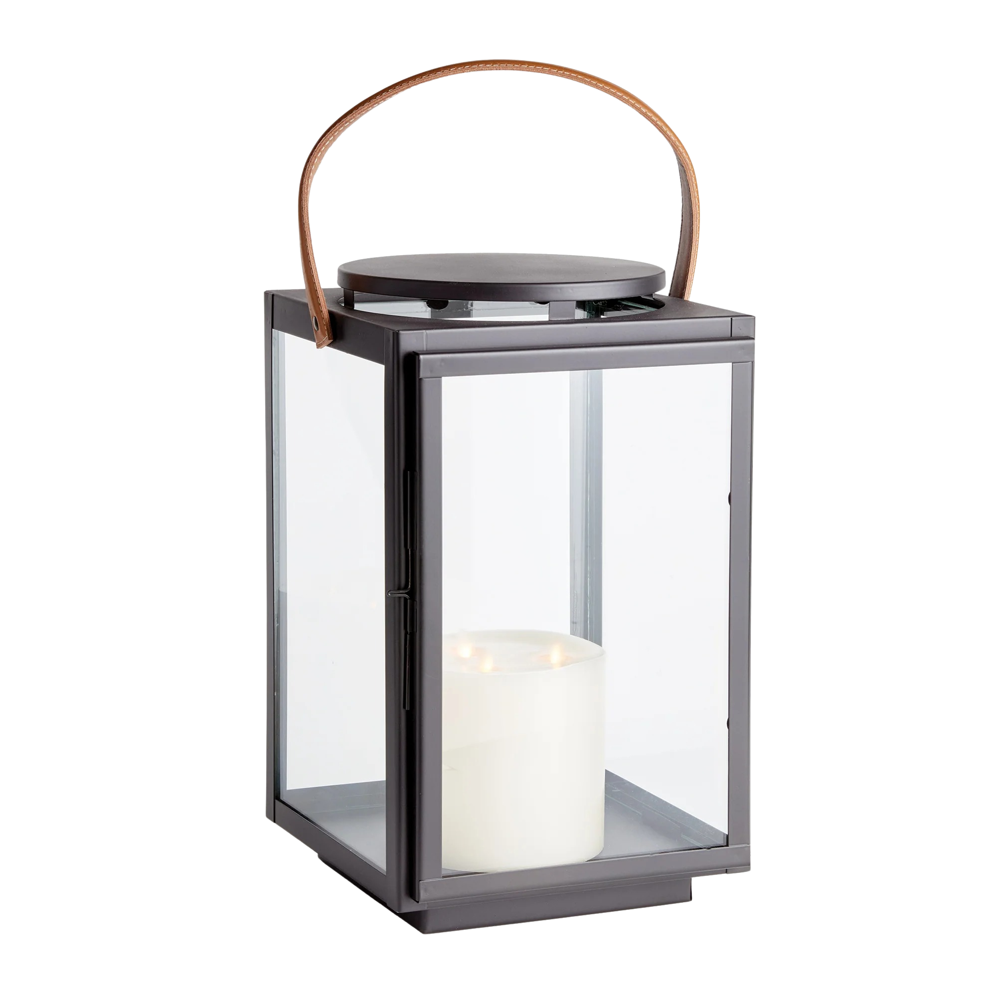 Featuring a real leather handle with tailored stitching, this well-scaled lantern is a mix of traditional and modern aesthetics. A beautiful accent for entryway, living room or study.