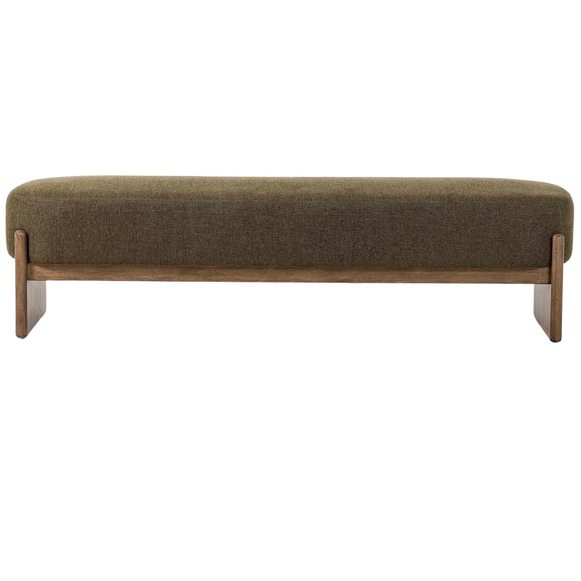 Featuring Kirby Sutton Olive Accent Bench by Four Hands at Amethyst Home. Style this modern accent bench just about anywhere. A cradle base of wire-brushed parawood supports heavily textured upholstered seating.Overall Dimensions: 75.50"w x 20.50"d x 20.50"hWeight : 67.24 lbsMaterials: 100% Polyester, Solid Parawood, Poplar Plywood. Amethyst Home provides interior design, new home construction design consulting, vintage area rugs, and lighting in the Tampa metro area.