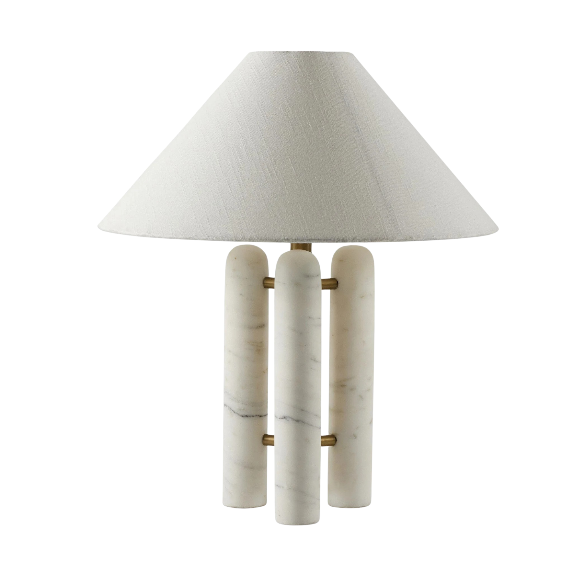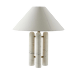 This stunning table lamp features three smooth Italian marble pillars, reminiscent of the marble columns found throughout Italy.