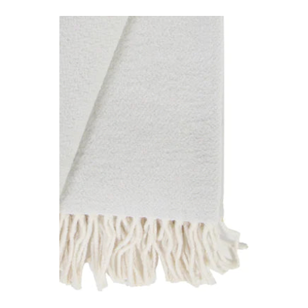 Cozy combed cotton Billie Light Grey Throw with a soft ivory interwoven weave ending in tassels.