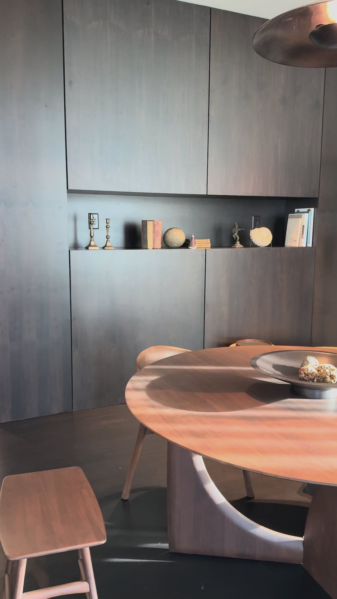 Geometric Oak Round Table, Osso stool and Bok chair