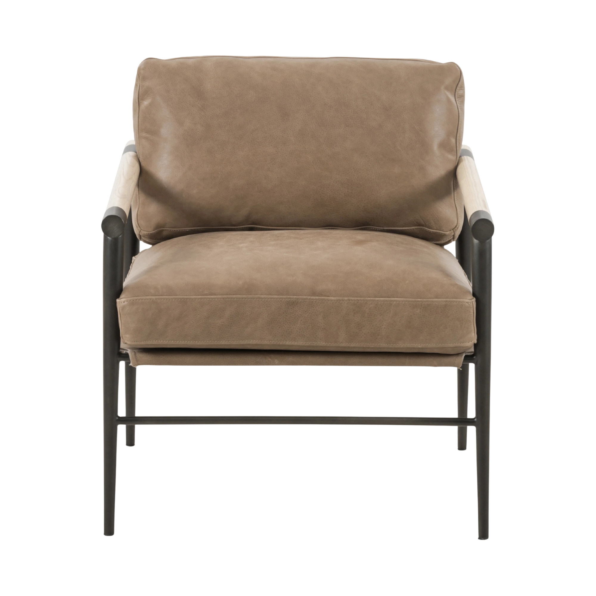 We love the slim, black steel frame of this Rowen Chair - Palermo Drift. Buttery, pronounced seating of tan top-grain leather with whitewashed ash accentuating angular arms make this an attractive seating choice for any living room, bedroom, or lounge area.