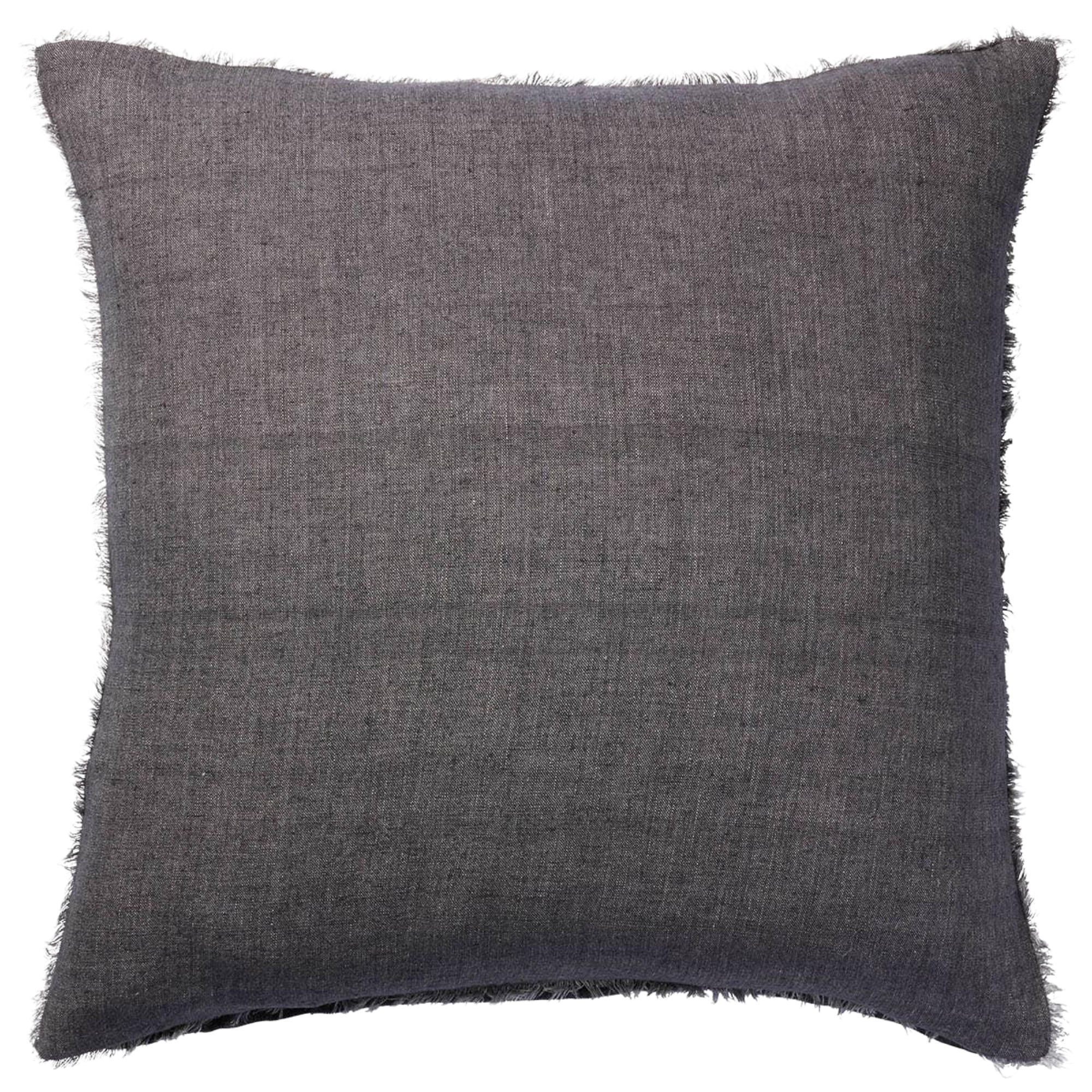 Linen is a fiber that takes on a soft beauty the more it is washed and worn ? its beauty is shaped by daily life. The handmade Cassis pillow features a soft charcoal color and a natural fringe on all sides. The gentle texture brings subtle sophistication to any contemporary home.