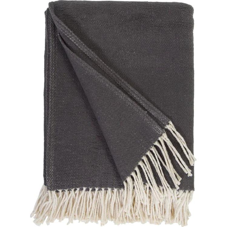 Cozy combed cotton Billie Charcoal Throw with a soft ivory interwoven weave ending in tassels.