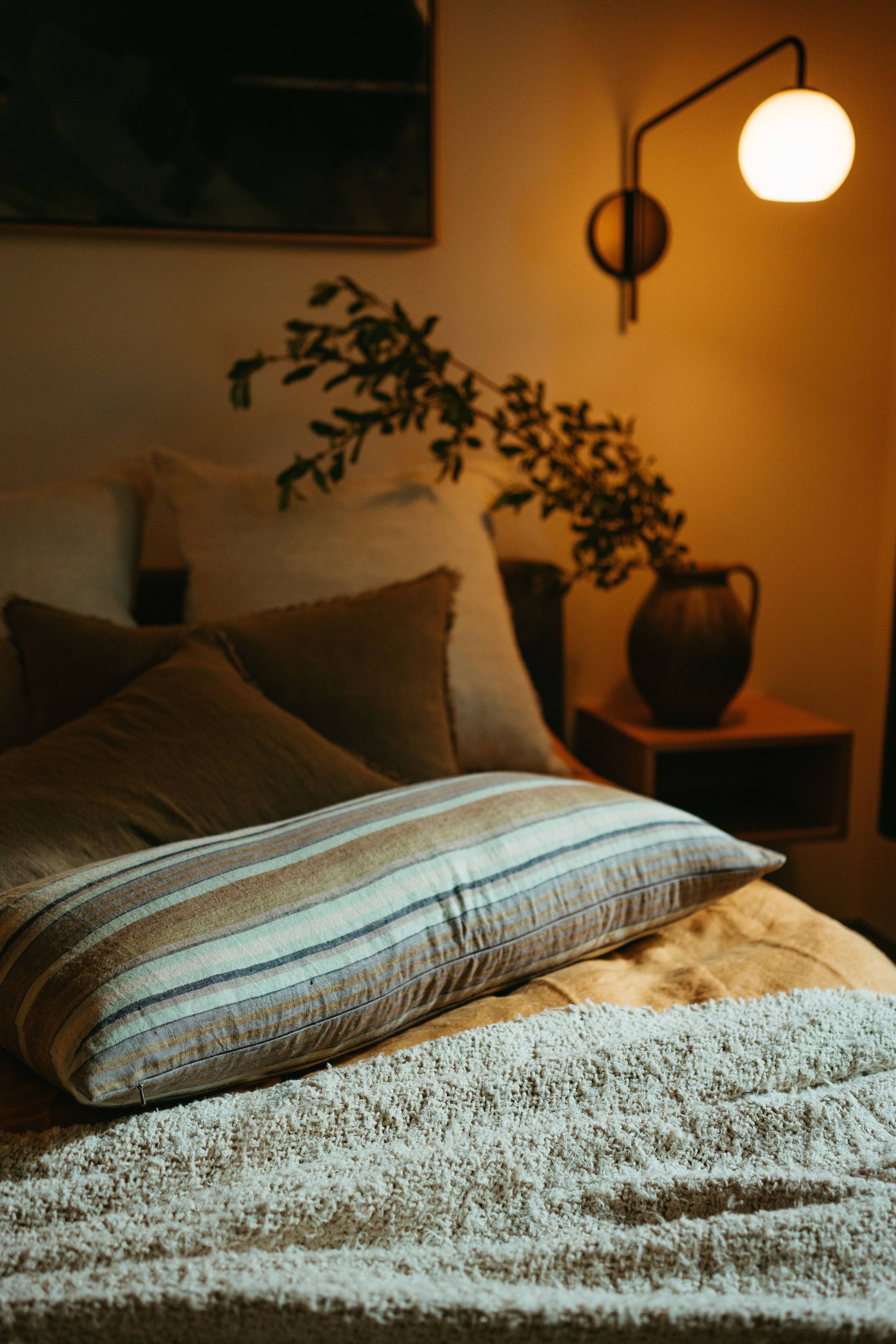 Our Seychelles Striped Linen pillows are double sided and woven with timeless earthy stripes. These versatile pillows are so easy to style, their muted multi-colour stripes giving endless possibilities on beds, sofas and accent chairs alike.