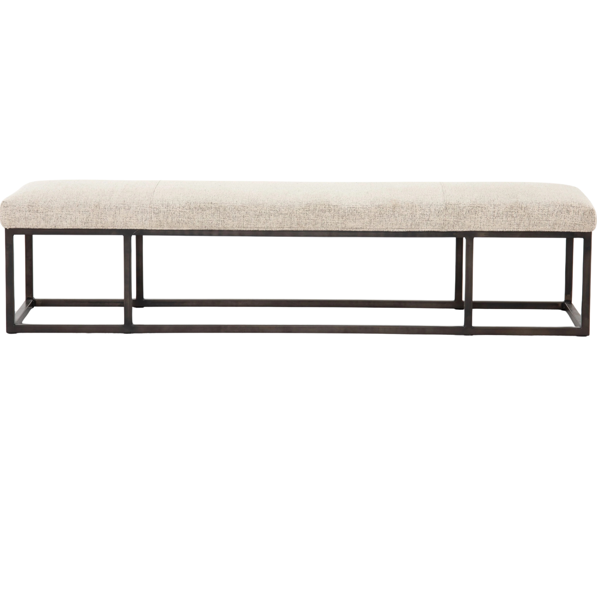 Featuring Beaumont Bench - Plushtone Linen by Four Hands at Amethyst Home. The Beaumont Plushtone Linen Bench has streamlined shaping and is textural to the touch. Gunmetal-finished iron framing stands slim and structured to support a well-tailored top of plush, linen-like upholstery. Open, adaptable styling allows for versatile placement options.