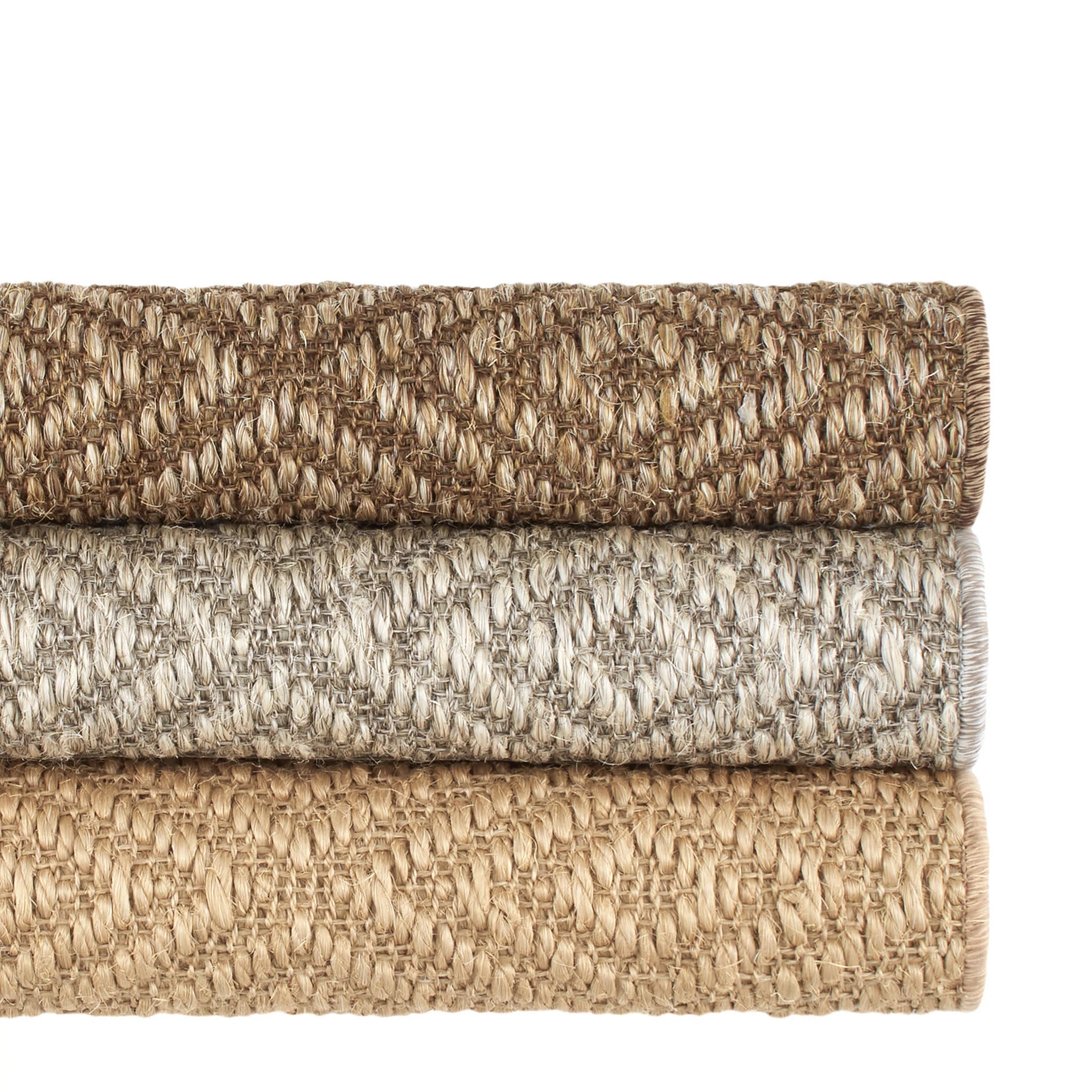 A repeating diamond pattern adds a sophisticated, modern touch to this natural sisal rug. Latex-backed for added durability, regular vacuuming and rotation should keep this rug in shipshape condition, even in the busiest areas of your home. Custom-cut rugs are ideal for large, long, wide (or narrow) rooms and stairs.