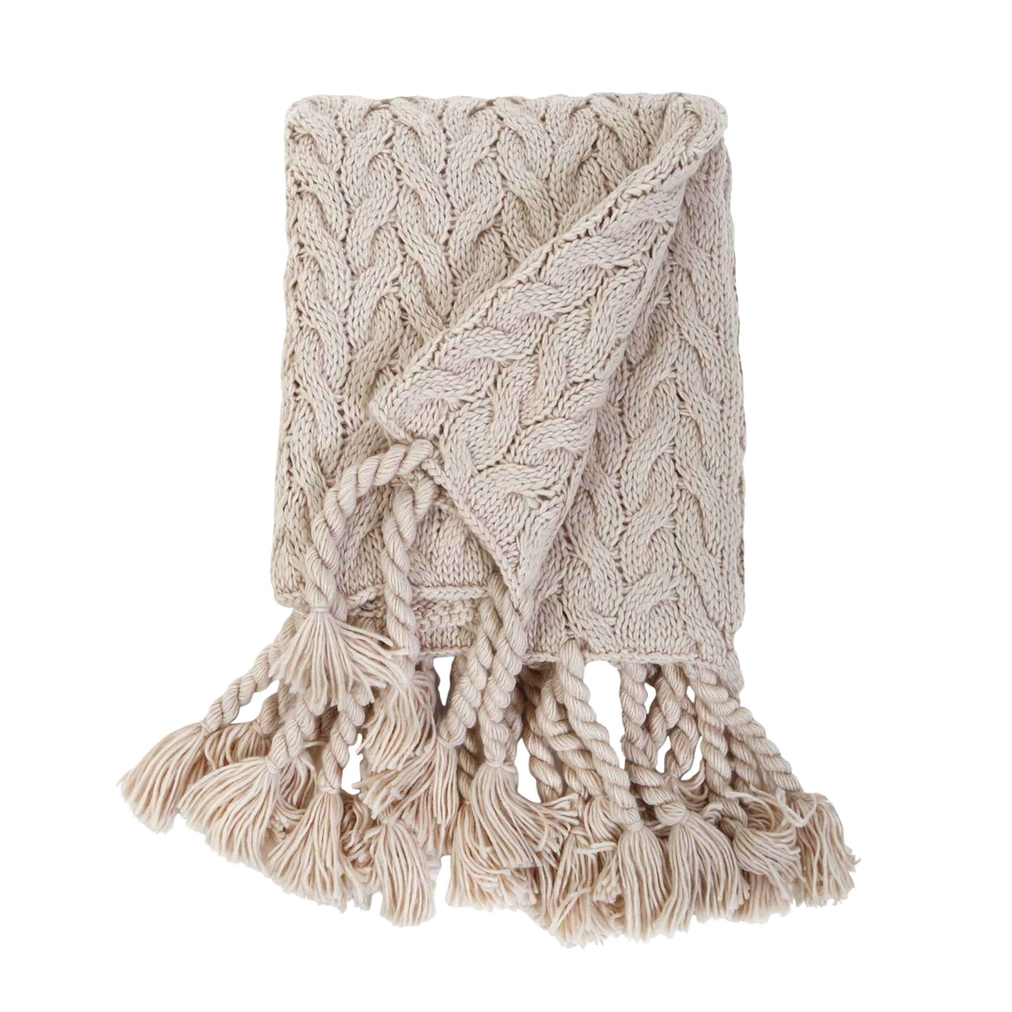 This Capistrano Throw - Three Colors is a soft cable knit throw featuring Pom Pom at Home's popular long twisted tassels along the edge. Available in 3 gentle colors.