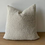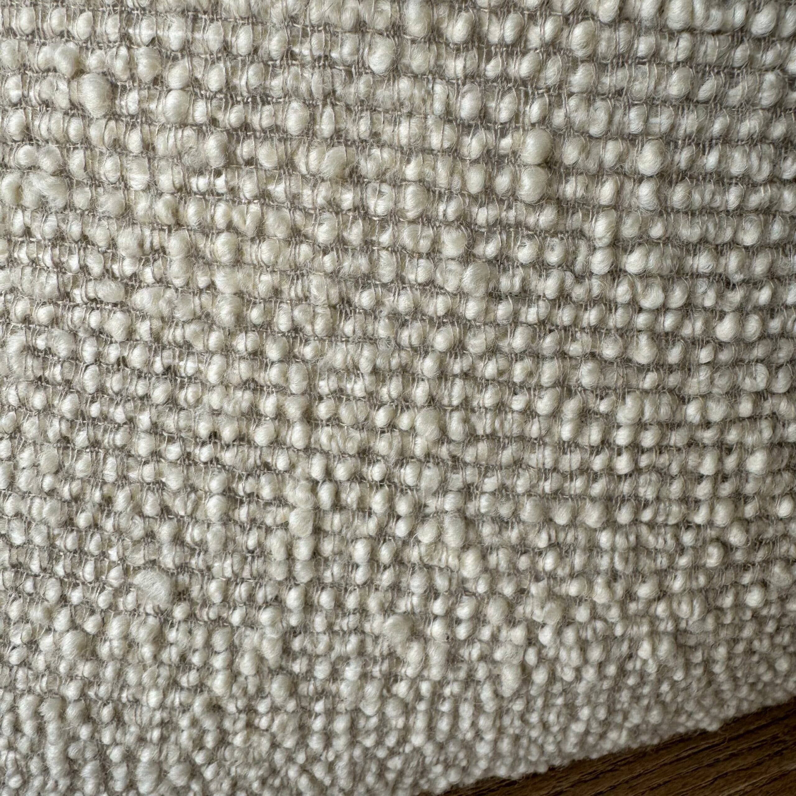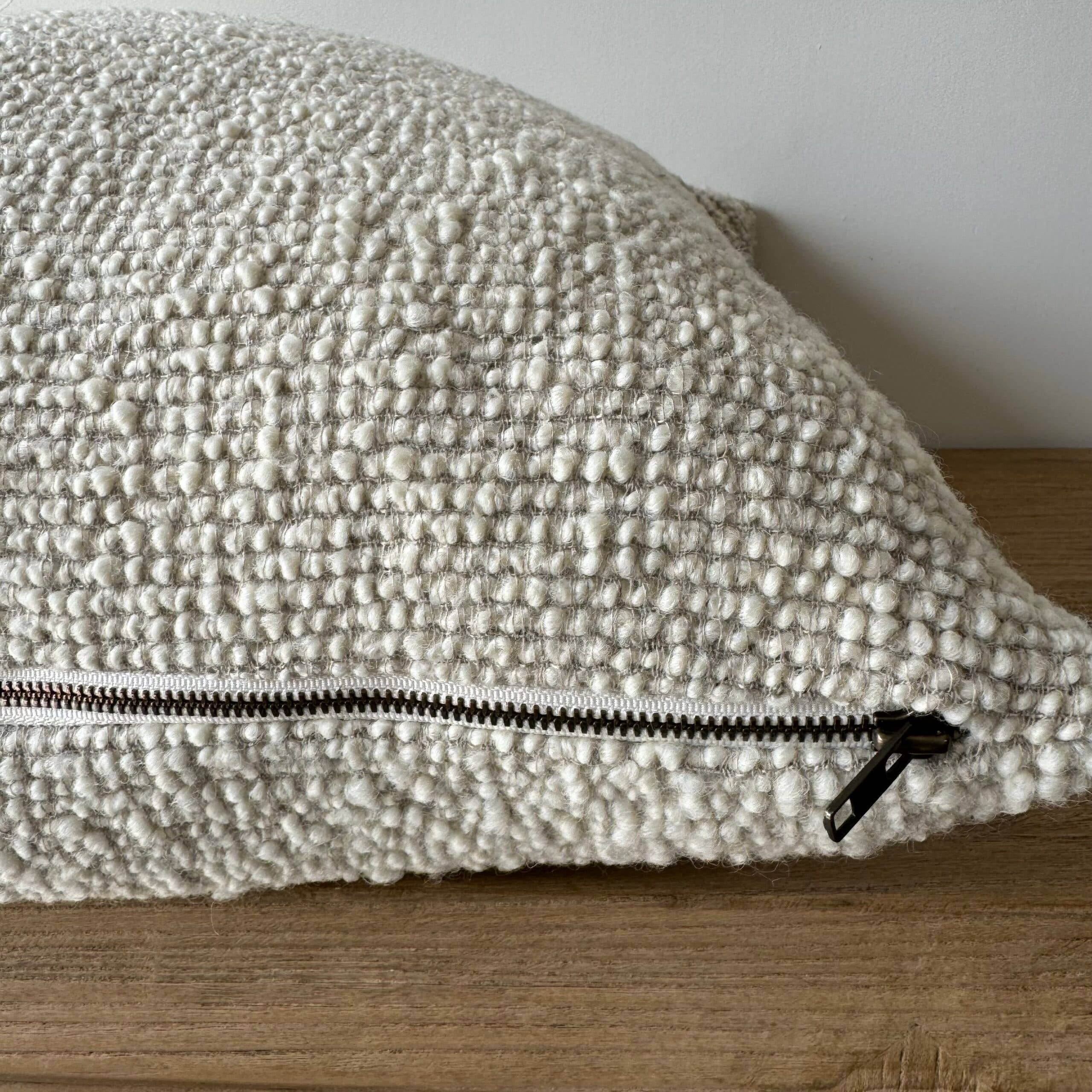 Oatmeal and natural flax wool and linen woven fibers in a stonewash finish create this luxurious soft pillow. Sewn with an antique brass zipper closure and overlocked edges.