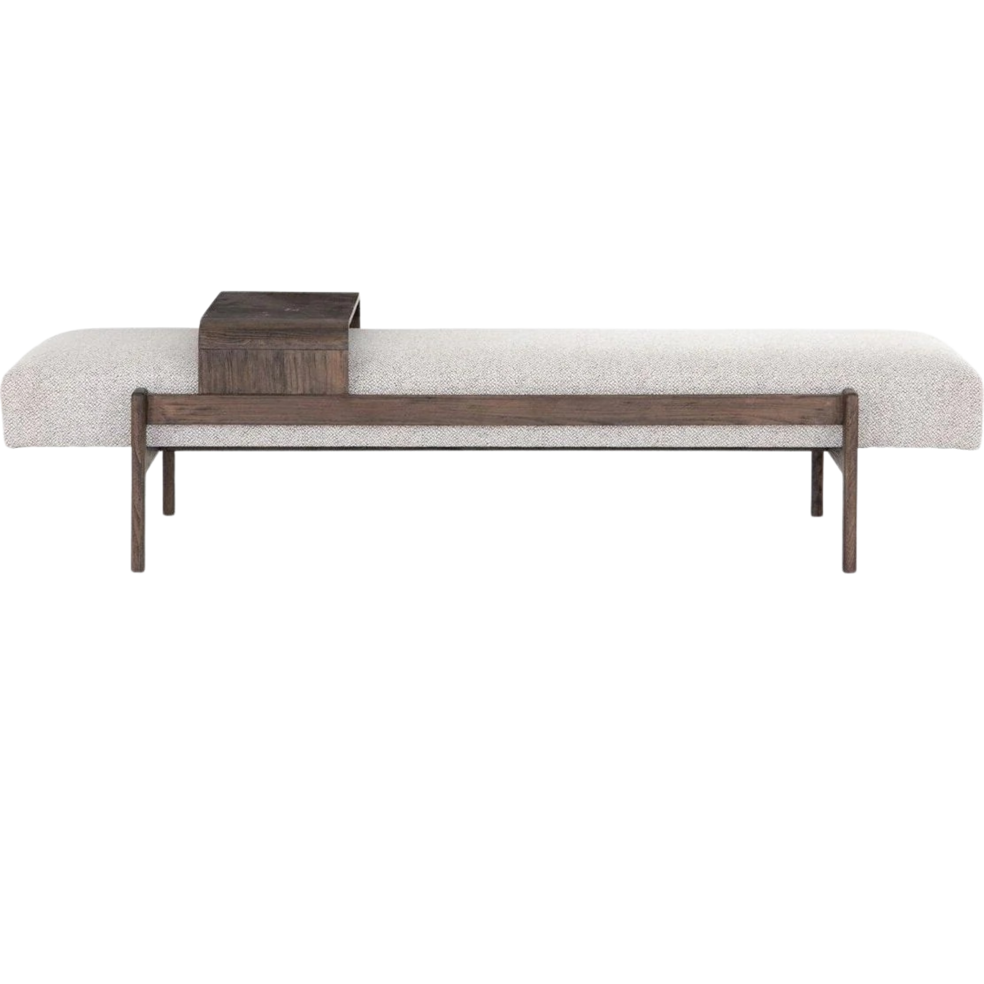 A uniquely modern statement piece inspired by the functional mid-century-style telephone bench, textural white-grey seating features a sliding tray of solid beechwood – the perfect place for a favorite book or cocktail. Great in the entryway or living room.