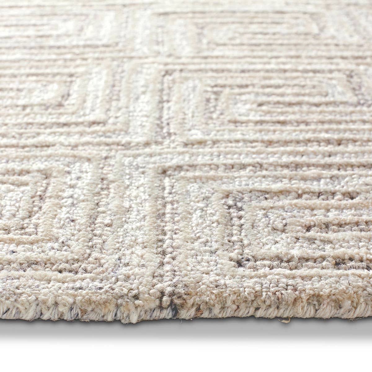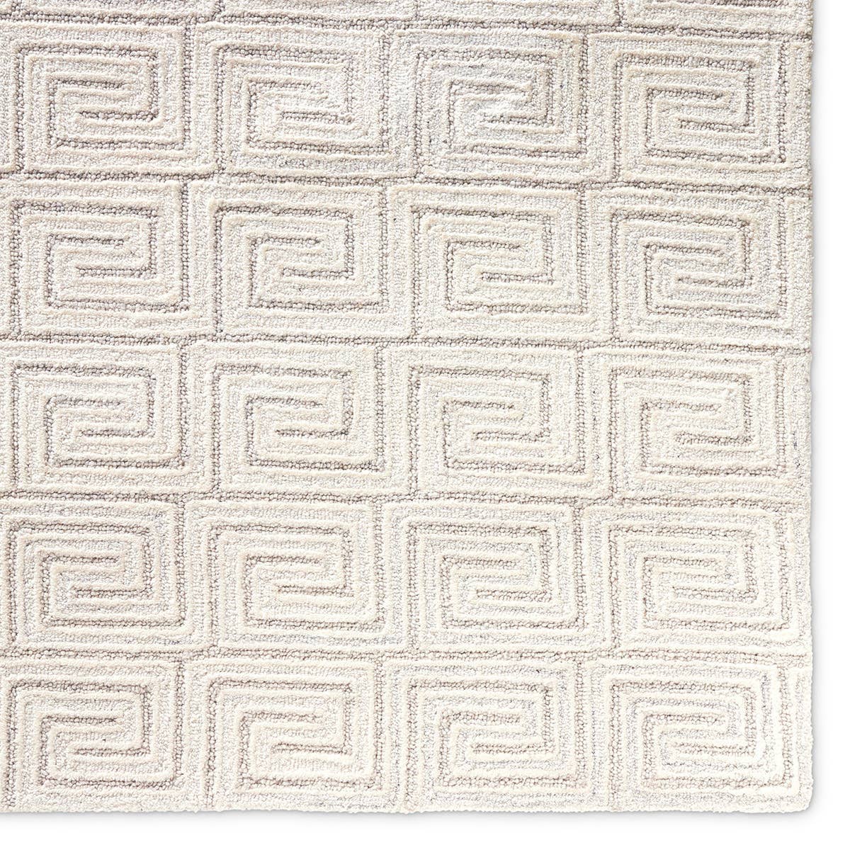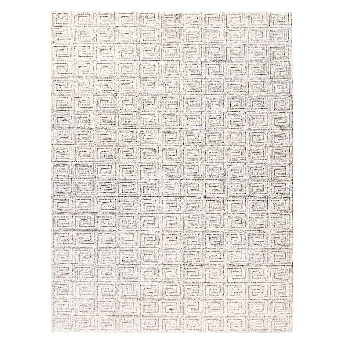 The Capital collection takes classic motifs to a whole new level of chic. The Harkness area rug showcases a striking Greek key design in a texture-rich looped and cut pile. Viscose adds a subtle luster and soft feel to the natural wool fibers, while a stunning white colorway with flecks of gray makes a glam statement.