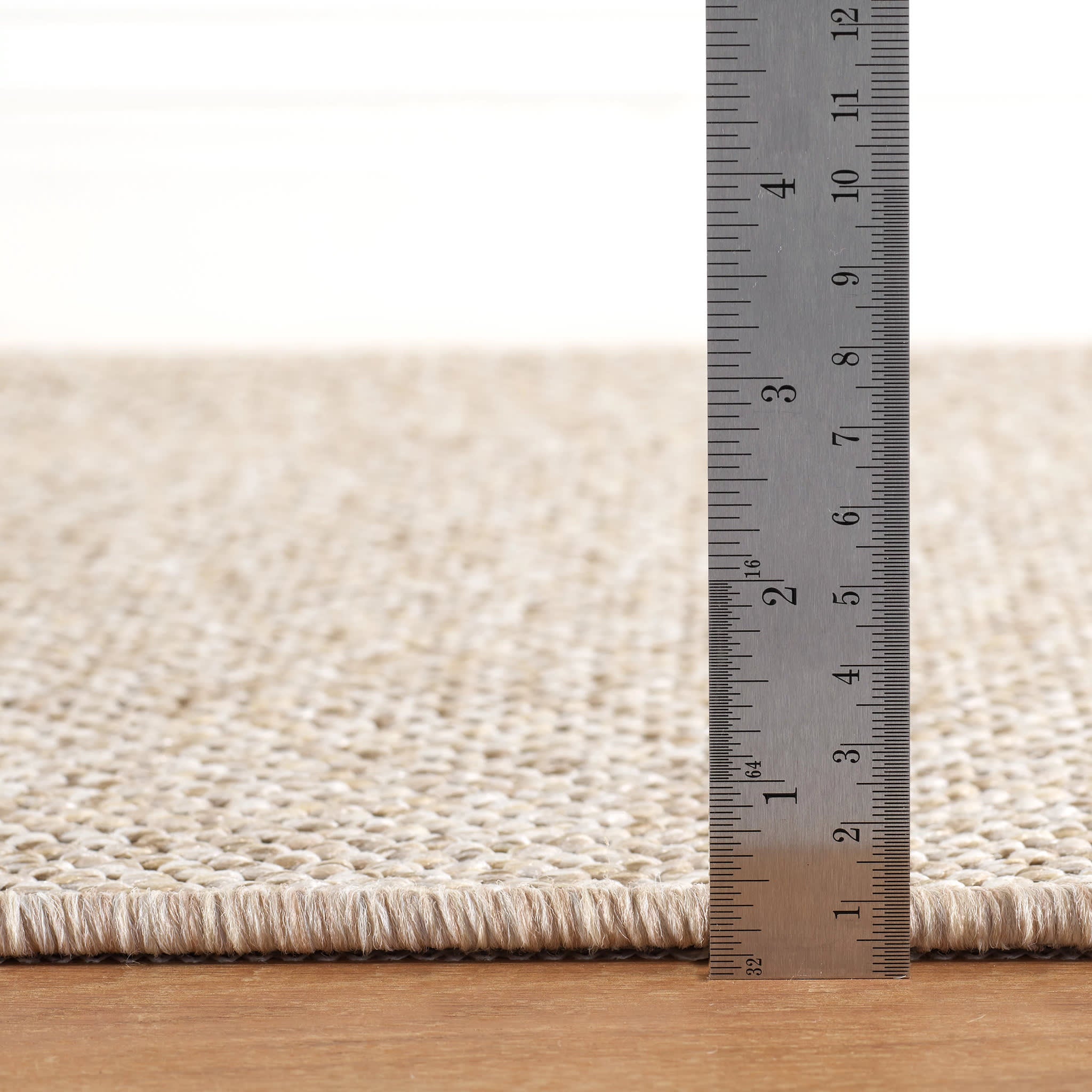 The Pioneer Woven Indoor/Outdoor Custom Rug is made from 100% polypropylene. Featuring an all-over marled effect with subtle color variation and a chunky texture that resembles sisal, it’s durable, water-resistant, and UV-treated to help minimize fading. Washable, scrubbable, and bleachable, this rug is perfect for high-traffic spaces indoors and out, including patios, porches, kitchens, entryways, and mudrooms.