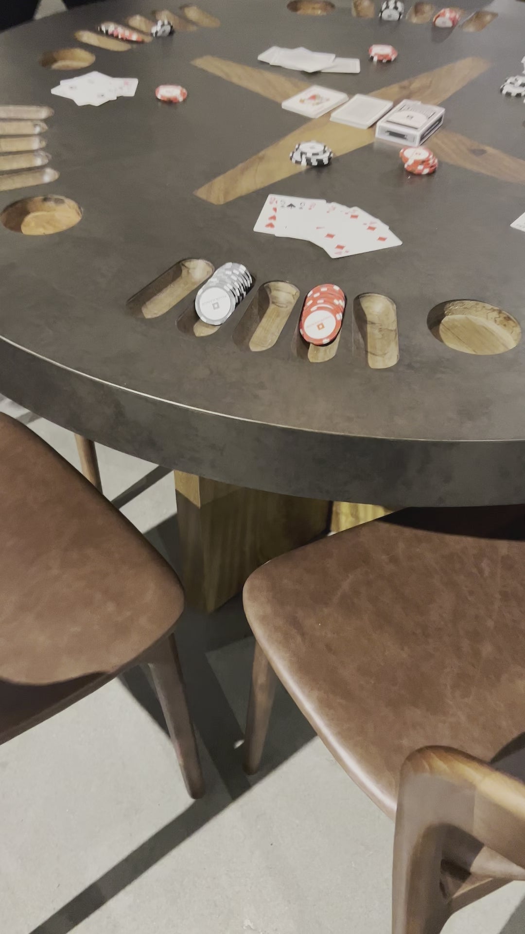 Handmade by skilled artisans, the Natural Brown Guanacaste Poker Table is a one-of-a-kind game that features a beautiful blend of hand-finished Guanacaste wood and metal that’s been aged through a manual, month-long process using natural elements to bring unique character to each piece. Includes built-ins for poker chips and drinks. Seats six.