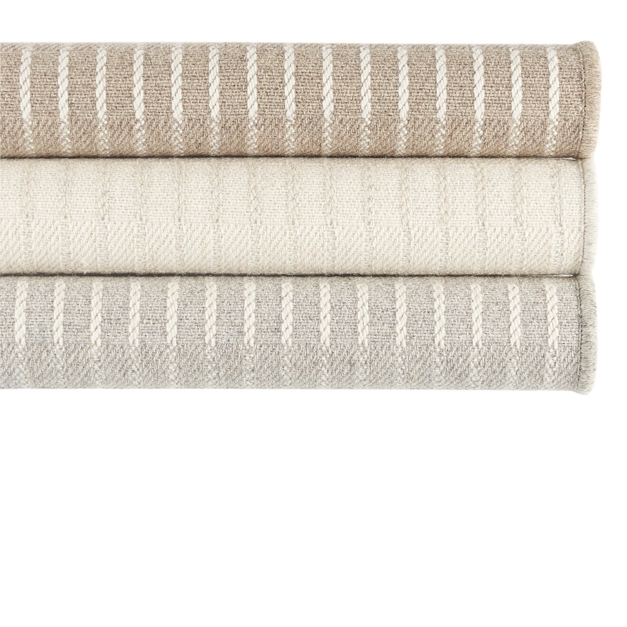 The Lane Woven Wool Custom Rug is a flatweave construction with tightly woven wool fibers in a subtle ladder stripe. With a contemporary feel and harmonious neutral colors, this durable rug can go anywhere and is a beauty to behold.