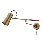 Tailored task lighting, this portable, functional swing arm sconce is also thoughtfully designed and beautiful. The sleek arm features a wooden handle on one end and an adjustable metal shade in Patina Brass or Bronze on the other. The twisted black cord detailing at the shade and backplate give Novel a nostalgic feel. Part of our Lauren Liess collection.
