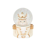 Painted nutcracker snow globe, white, cream and gold, 65mm/3.5 in. Please note that due to the nature of the materials, slight color variations may occur between individual items and compared to images. The approximate dimensions are: 2.6x2.3x3.6in.