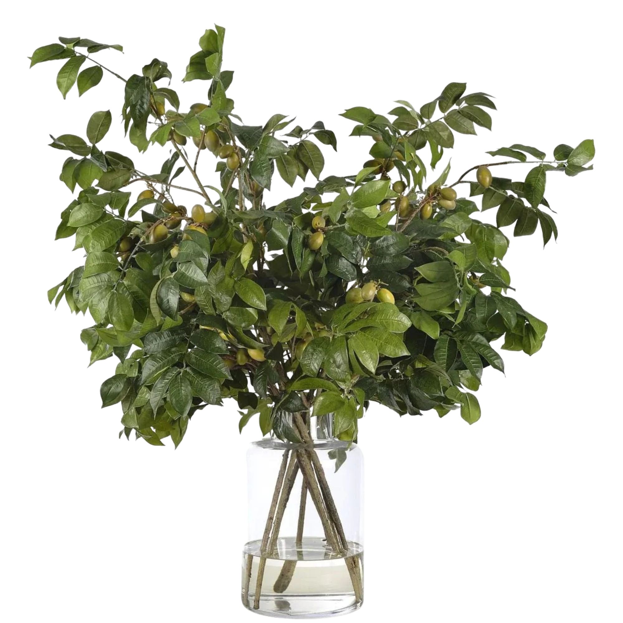 SKU: GN1001 Item Name: Olive Branch, Faux Watergarden, 35" Color: Green Container Description: Glass Vase
