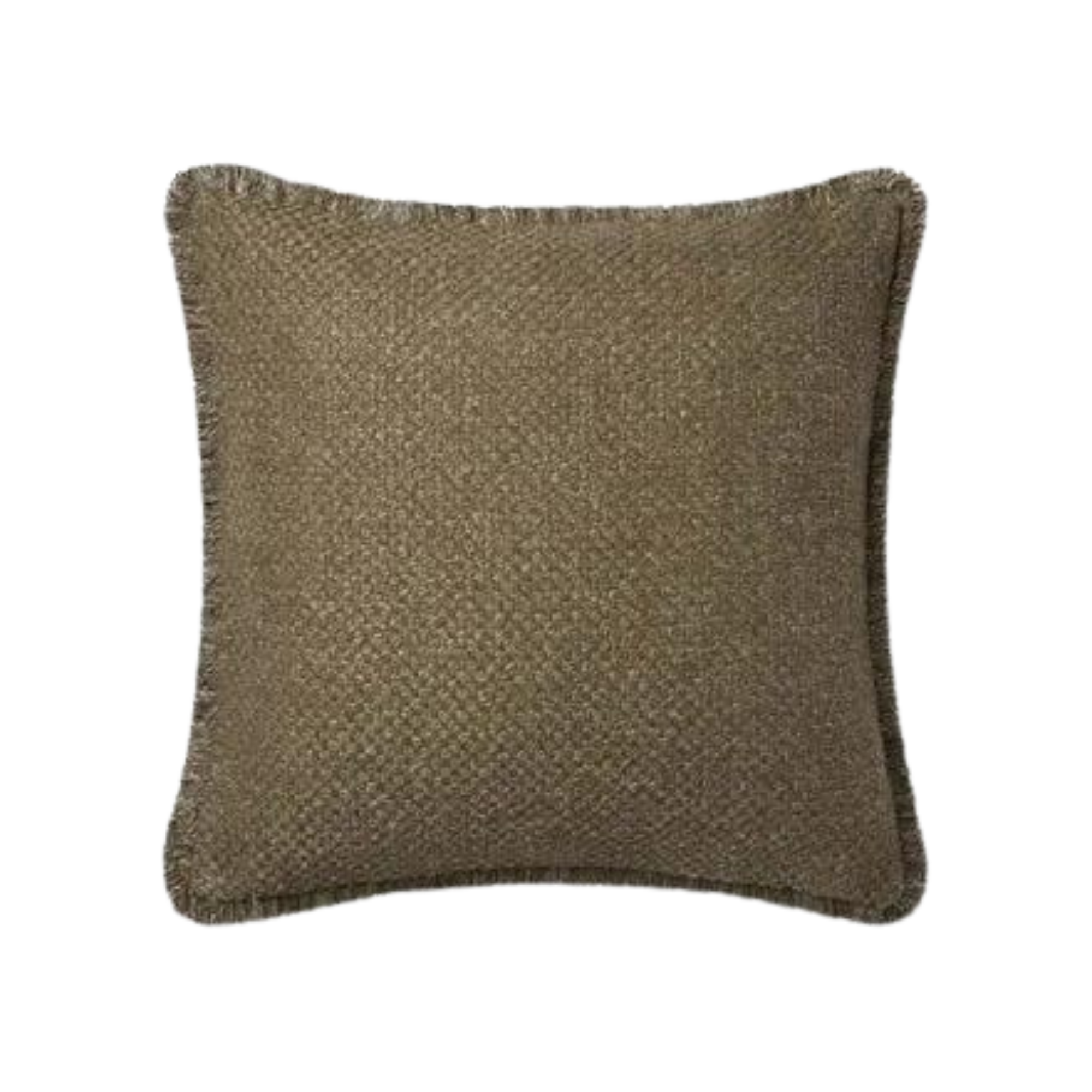 Featuring Olive Pillow by Loloi at Amethyst Home. This neutral throw pillow in an earthy olive shade is framed with short, soft fringe for a hint of texture and movement. The pillow is made of cotton, polyester, and rayon and measures 22” x 22”, a standard size to style in living rooms and bedrooms.